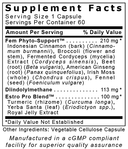 Estro Flavone™ is a natural estrogen support formula that is designed to promote healthy hormone support, especially estrogen in women. It features a comprehensive botanical formula that contains Fem Phyto- Support™, Estro Pro Blend™ and DIM (diindolylmethane).